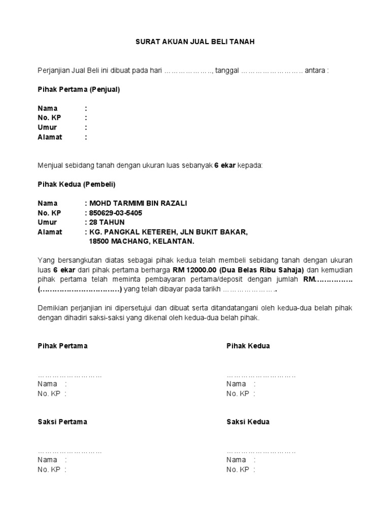 Surat Perjanjian Jual Beli Tanah Yang Baik Terbaru Contoh Surat from www.contohsurat.id Selain itu, pertanggungjawaban dari kedua belah pihak juga akan semakin bisa dipertanggungjawabkan. Untuk lebih jelas mengenai contoh surat perjanjian jual beli tanah, penulis telah menyiapkan contoh suratnya yang dapat anda gunakan sebagai acuan dan mempermudah proses pembuatan surat anda. Penjual menyerahkan sebidang tanah kepada pembeli sesuai dengan ukuran yang tertera pada surat jual beli dan pembeli. Dan ketika anda ingin memiliki barang atau harta tertentu surat perjanjian jual beli ini biasanya akan ditemukan pada proses jual beli tanah, rumah, mobil, sawah, kebun, sepeda motor, ataupun beberapa harta. Surat jual beli merupakan surat yang isinya menerangkan tentang jul beli yang terjadi. Ditambah lagi tidak banyak sumber contoh surat jual beli tanah yang ada baik di internet maupun yang dapat dibeli. #jualbelitanah #aktajualbeli #perjanjianjualbelicontoh surat perjanjian jual beli tanah ini tentunya sangat berguna bagi anda yang hendak menjual maupun. Para pihak menyatakan bahwa telah mengetahui dengan jelas dan benar mengenai lokasi dan keadaan objek kesepakatan sekaligus surat perjanjian jual beli tanah.